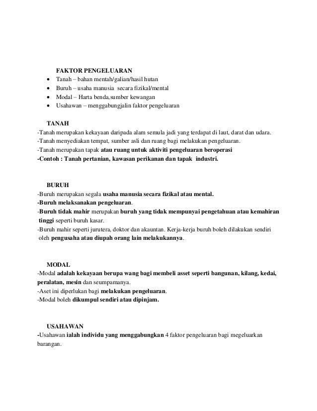 Spm Perdagangan 1 3 Faktor Pengeluaran